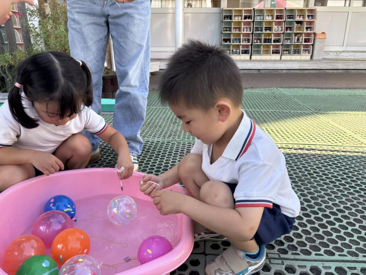 午前中はロンディなどのおもちゃで遊んだり発育測定を行ったりしました。午後はプール遊びをしました。水に顔をつけるのを苦手としていた子もほんの少しなら顔をつけられるようになりもう少しやってみようとやる気に溢れた顔を見せてくれていました。