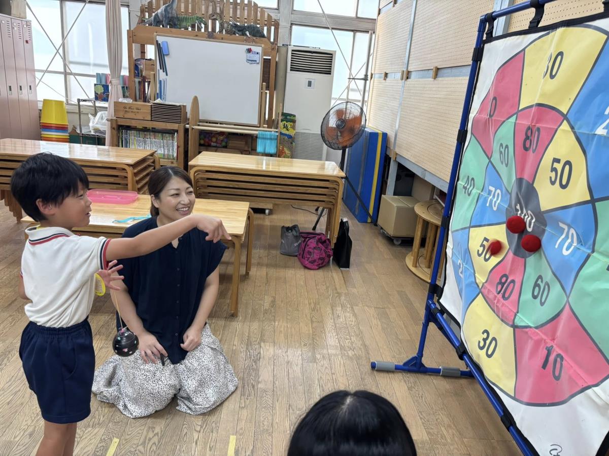 今日は午前中、前回折ったセミの目を作りました。丸シールにペンで黒目を描きますが、にっこりの目やウインクしている目など、それぞれ自分の好みで考えて描いていました。お友だちがどんな感じにしているのか気になり、覗き込んでいる様子が可愛かったです♡午後はブロックやカードで遊びました☆