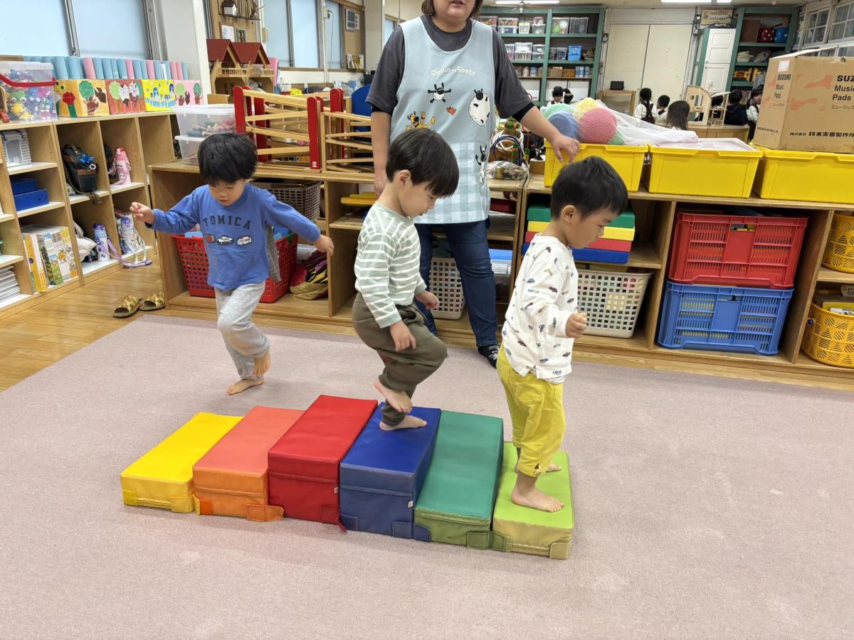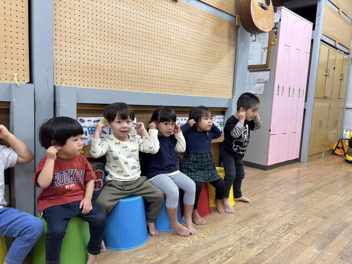 | 今日はリトミックに参加した後に園庭で遊びました。リトミックでは講師のみえ先生が来てくださりピアノの音に合わせて動いたり、止まったり、手遊びをしたり、全身を使って動いたりと楽しんで参加する事ができました♪初めてのリトミックで緊張した様子でしたがこれから少しずつ慣れて楽しんで参加してくれたら良いなと思っています!これから月に2回、あか組さんは2グループに分かれて1グループ15〜20分くらいで参加していきます。日程はわかばの行事の所に記載されます。 |