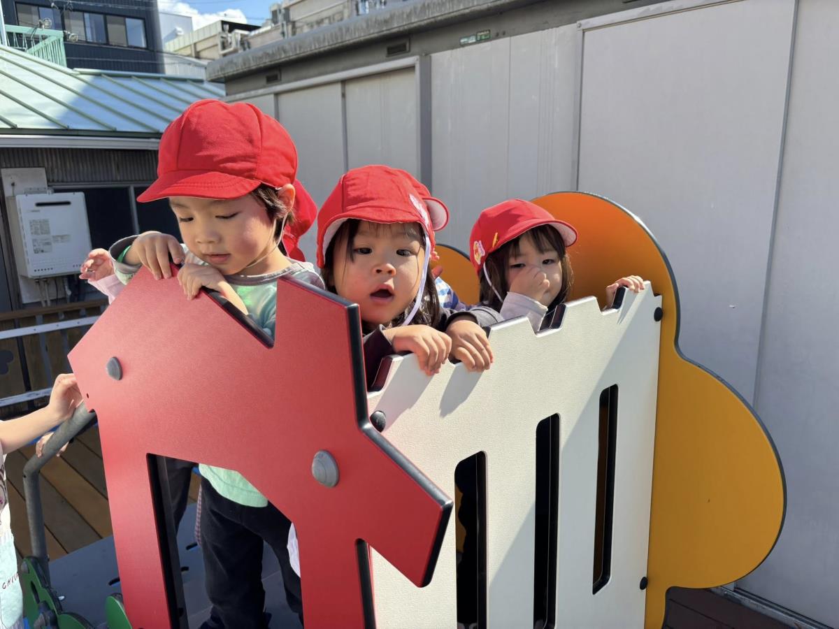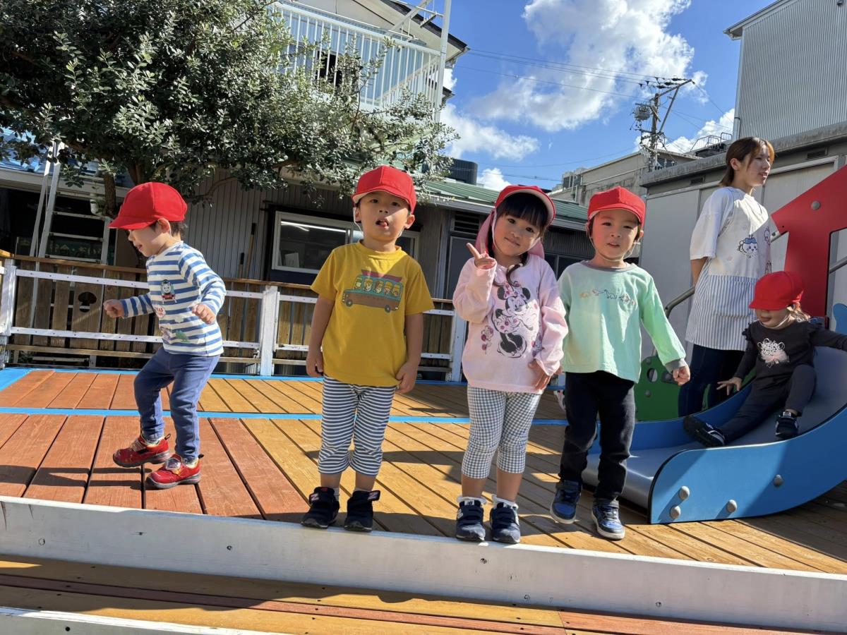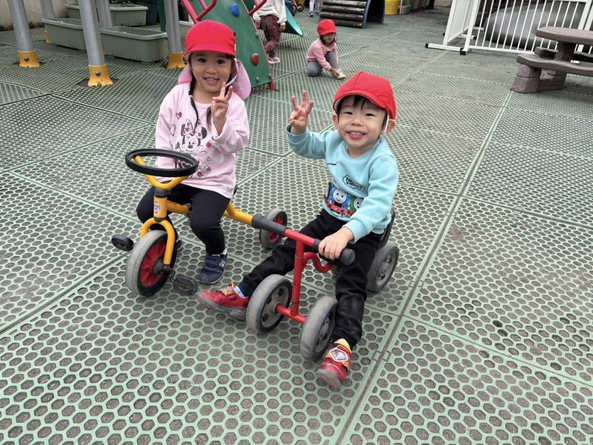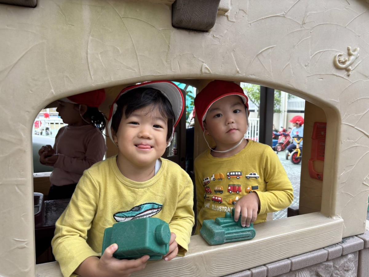 今日は園周辺をお散歩した後に園庭で遊びました。お散歩では色々な働く車を見る事ができたり、お花や金木犀を発見したりして楽しく歩く事ができました!園庭では久しぶりに三輪車等の乗り物で遊ぶ事ができたのでとっても嬉しそうに遊んでいました♪