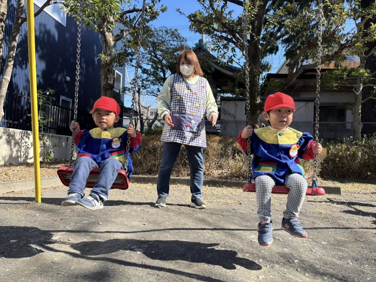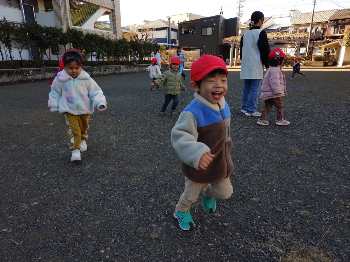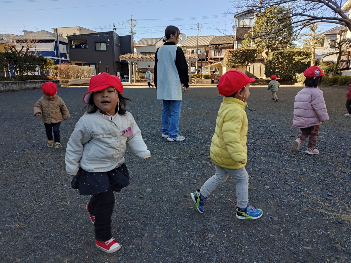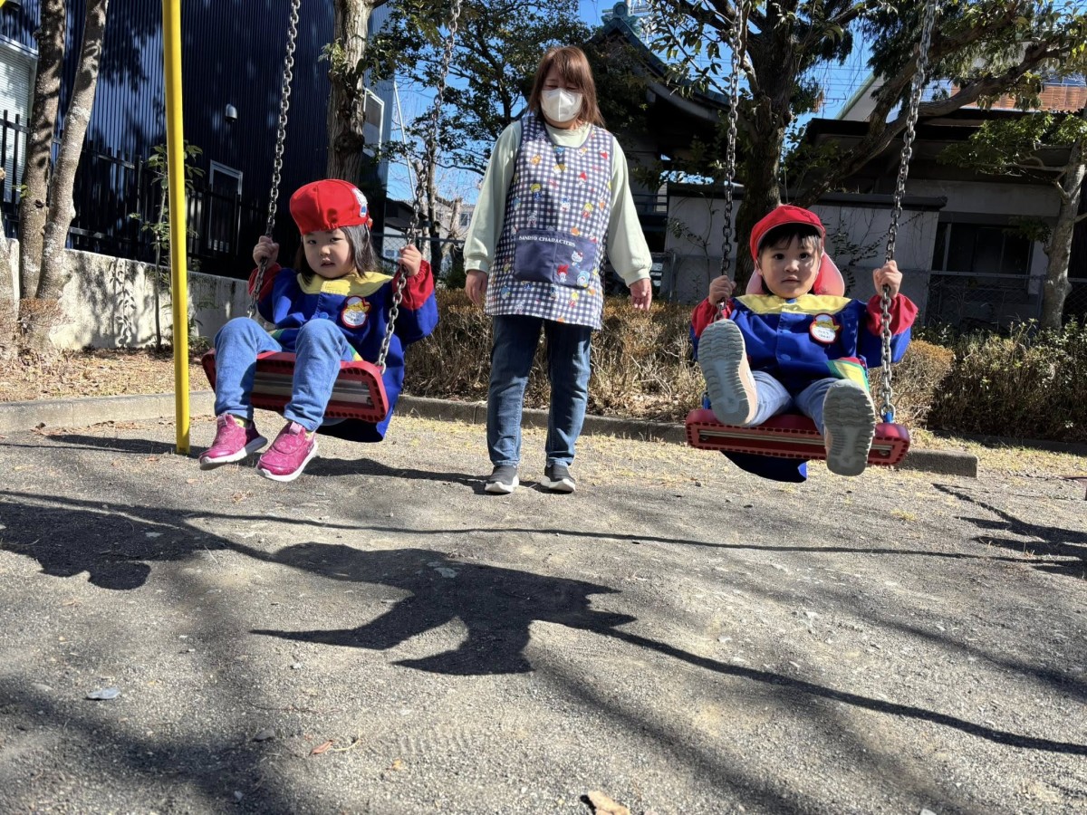 あけましておめでとうございます。今年もよろしくお願い致します。 今日は手を繋いで八雲神社までお散歩に行ってきました。お参りをした後は遊具で遊んだり、どんぐり拾いや葉っぱをふわっとさせて楽しんでいました。今日は久しぶりの保育園でお話したい事がたくさんあるお友だちが多くみんなお話が盛り上がっていました! 年賀の式にも参加し、静かにお話を聞く事ができて代表のお友だちが父母会さんからのお年玉をいただきました。