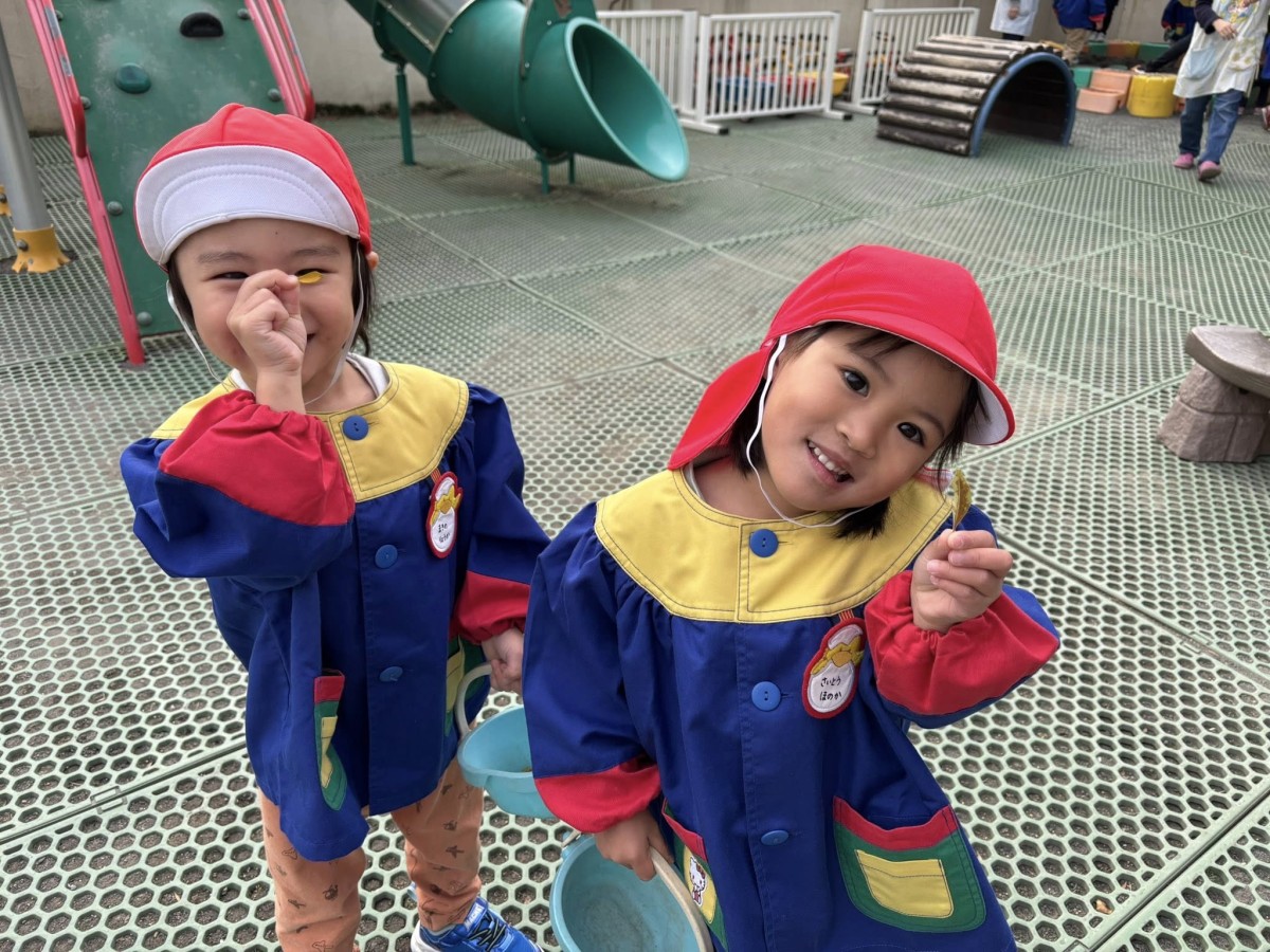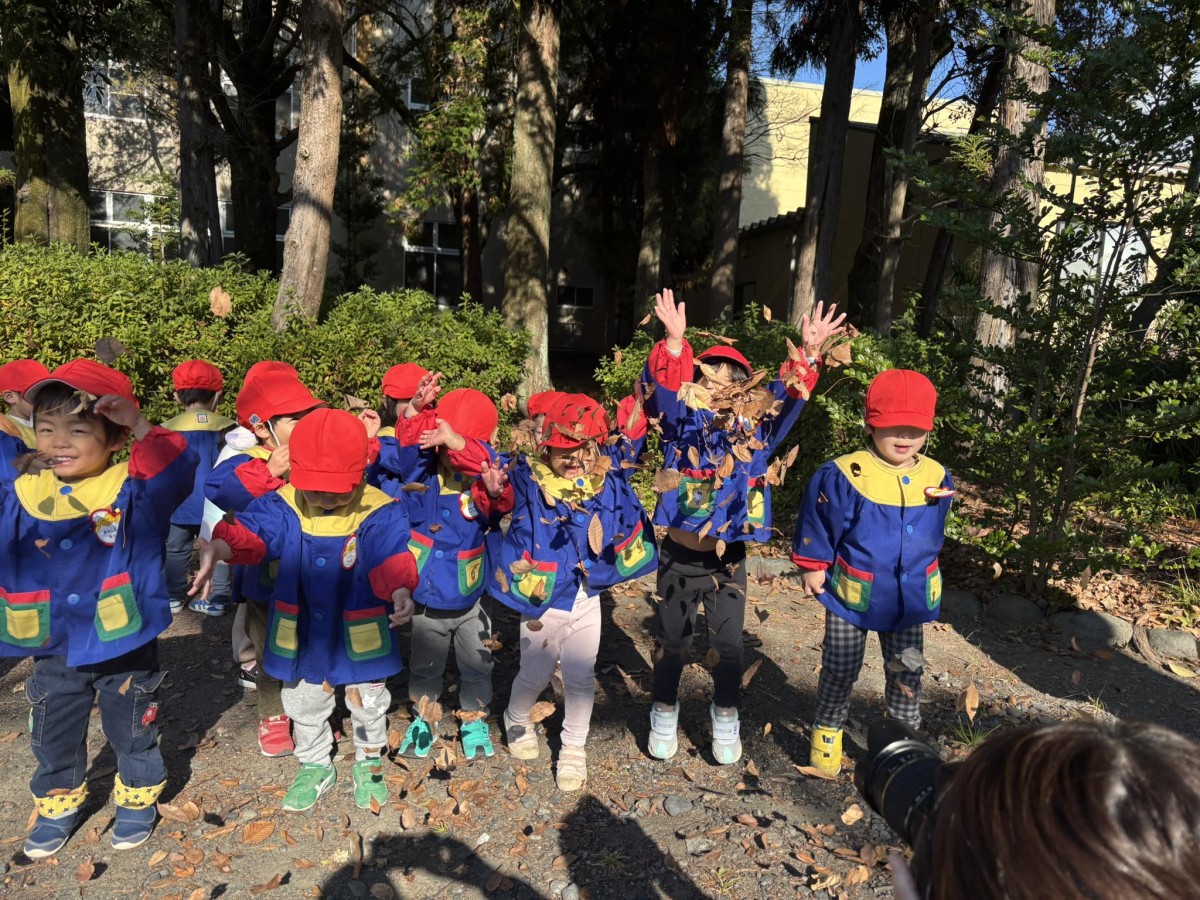 今日はリトミックに参加した後に八雲神社までお散歩に行ってきました。リトミックでは色々な動物に変身してピアノの音に合わせて動くのが楽しかったようです!神社の前が工事中だったのでショベルカーが動いているのを近くで見る事ができたり、葉っぱやどんぐり拾いに夢中になったり、葉っぱをたくさん集めてふわっと投げて葉っぱシャワーをしたりと楽しいお散歩となりました♪たくさん遊んできましたが遊び足りなかったようで帰り道では「またいきたい」「また葉っぱ探す」の声がたくさん聞こえてきました! また行こうね☆