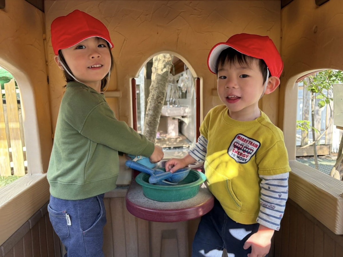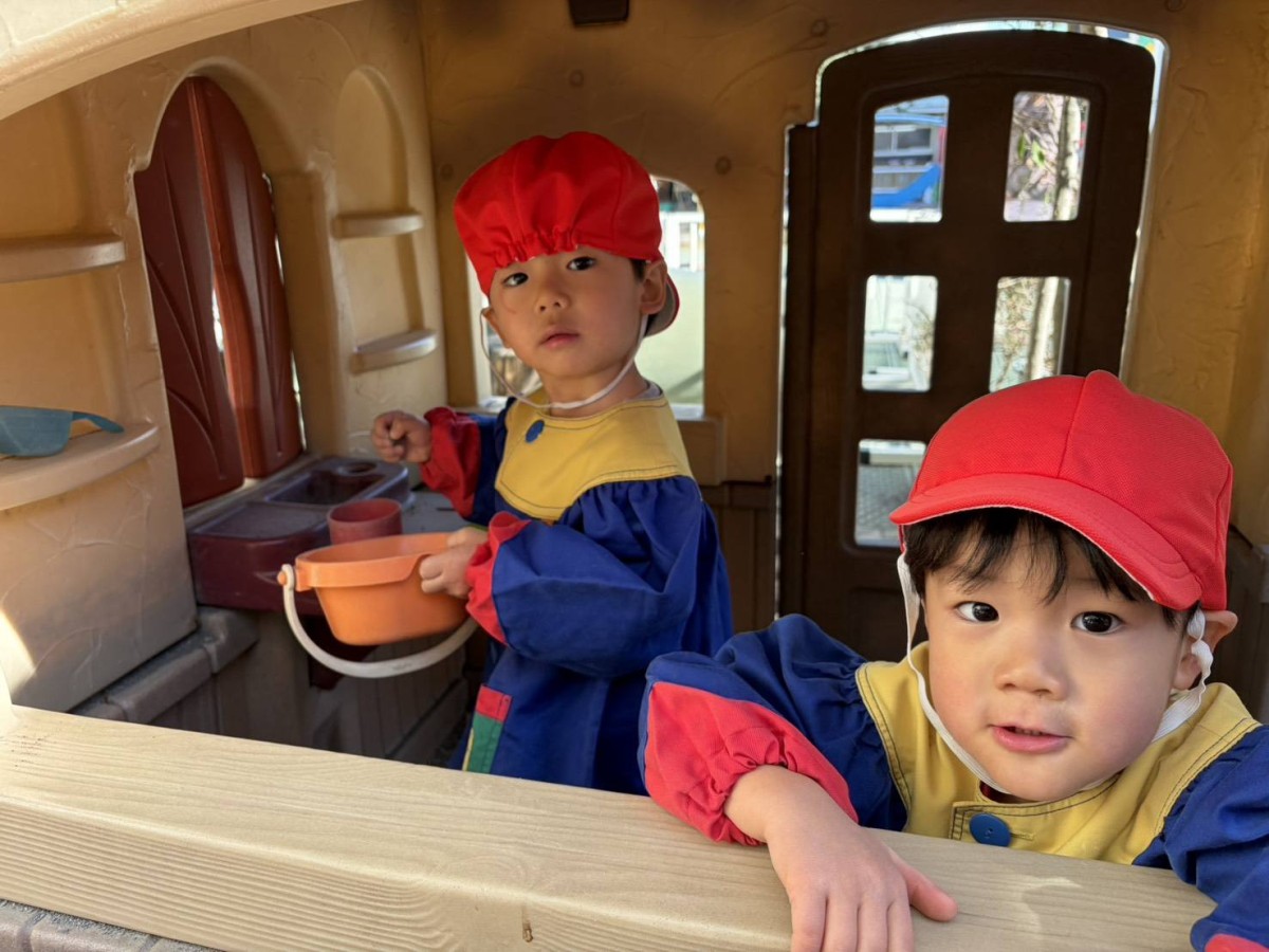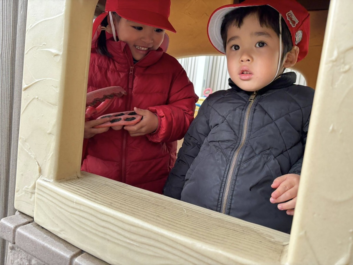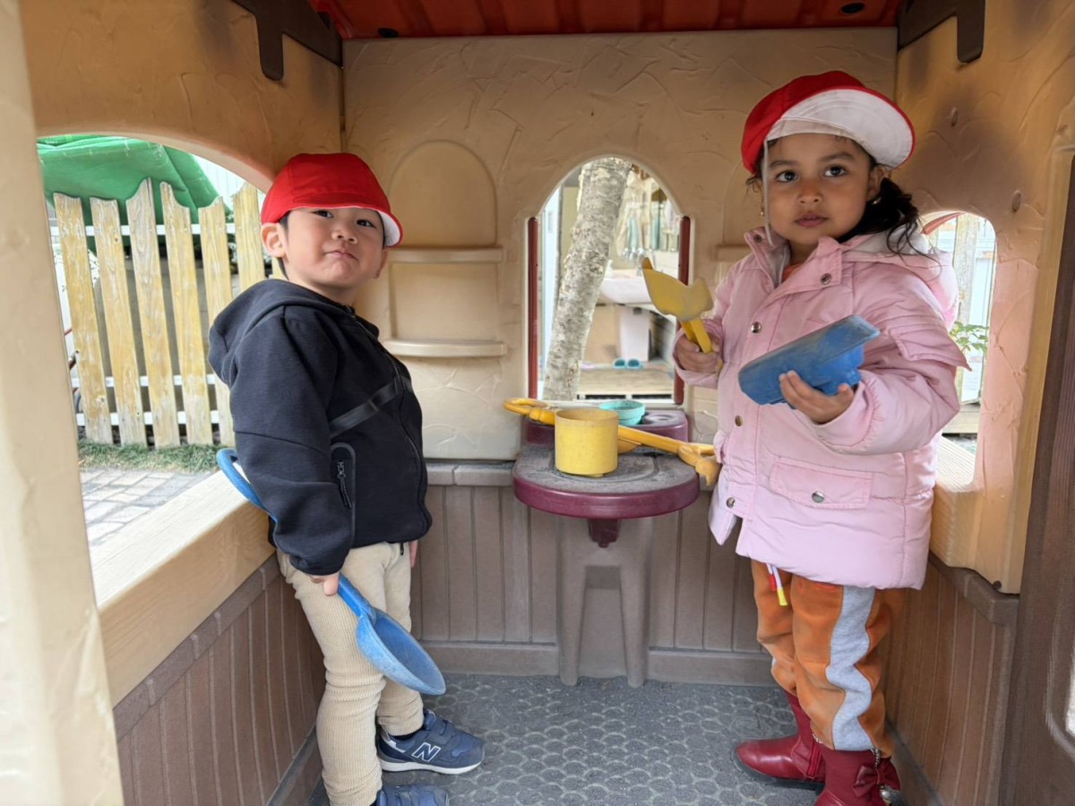今日は月刊誌を見た後にたっぷり園庭で遊びました。園庭ではお砂場でお友だちと一緒に大きなお山を作ったり、スモールハウスの中でごっこ遊びをしたり、バイクや三輪車でドライブを楽しんだりとお友だちとの時間を楽しく過ごしていました♪