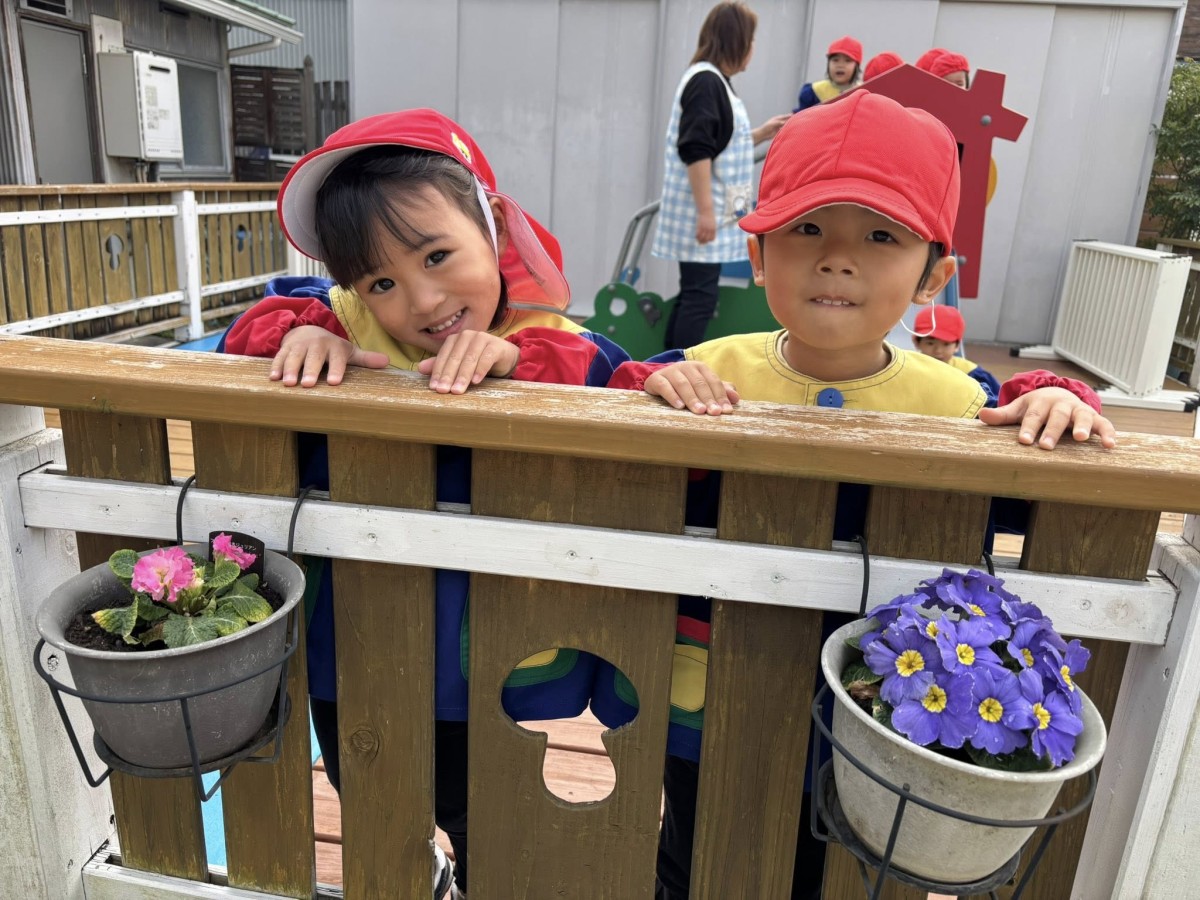 | 今日は、劇あそびの練習をした後園庭で遊びました。お友達と大きいお山を作って楽しむあか組さん。「先生見て!おっきいよー!」と嬉しそうに教えてくれました。他にも花壇のお花を見て「かわいい〜」と言いながら観察する子や、スモールハウスにお友達と入りごっこ遊びを楽しむ子もいました。 |