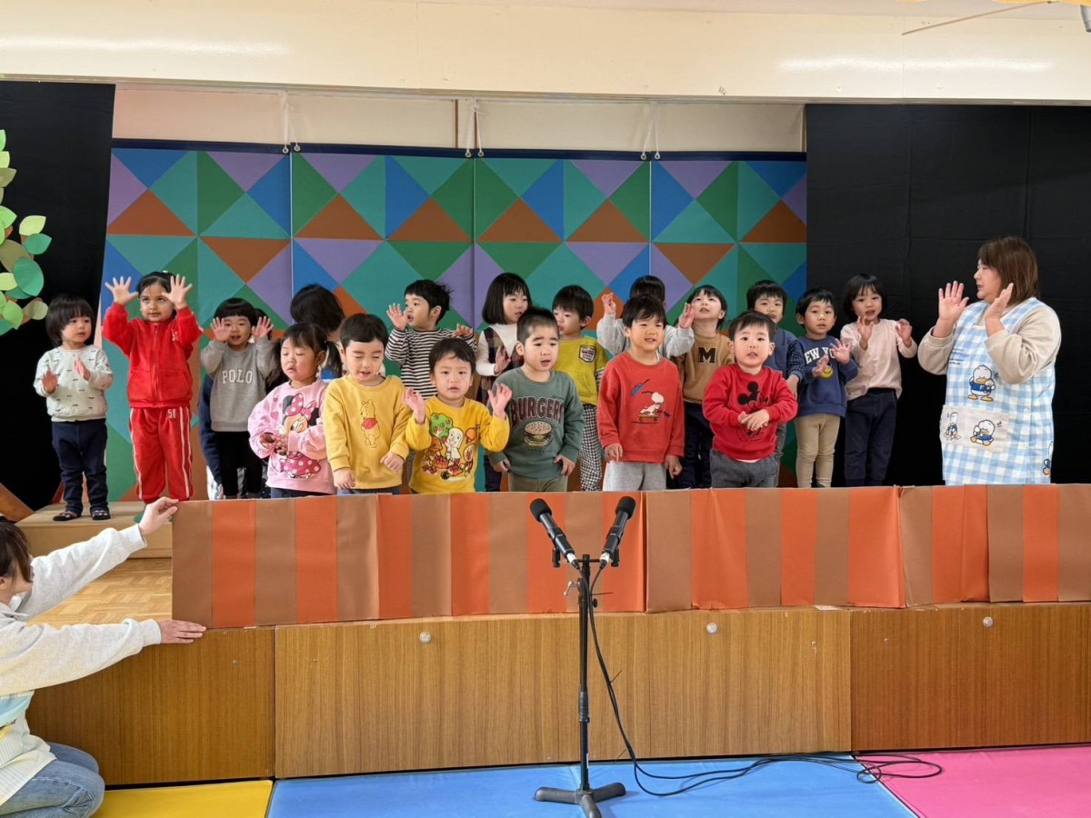 今日は発表会!朝は少し緊張した様子でしたが舞台の上では劇遊び『もりのおふろ』や歌、合奏を頑張ってやり切る事ができました!!たくさんのお客さんの前でみんな泣かずに舞台の上に立てた事、緊張しながらも楽しんでできた事、みんなで一緒に頑張った事、良い経験になったと思います。舞台を降りると「楽しかった」という声も聞く事ができて、またひとつ成長できたのではないかな!?と嬉しくなりました♪保護者の皆さんもたくさんのご参観ありがとうございました。
