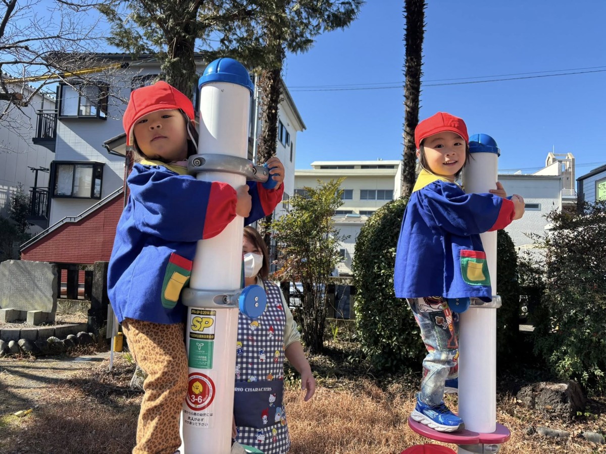 | 今日は初めて誘導ロープを使わずにお友だちと手を繋いで八雲神社までお散歩に行ってきました!お友だちとしっかり手を繋いで離すことなく歩く事ができました♪これから少しずつ練習して慣れていけたらと思っています。神社では遊具で遊んだり、木の実拾いに夢中になったりと楽しく遊んでくる事ができました! |