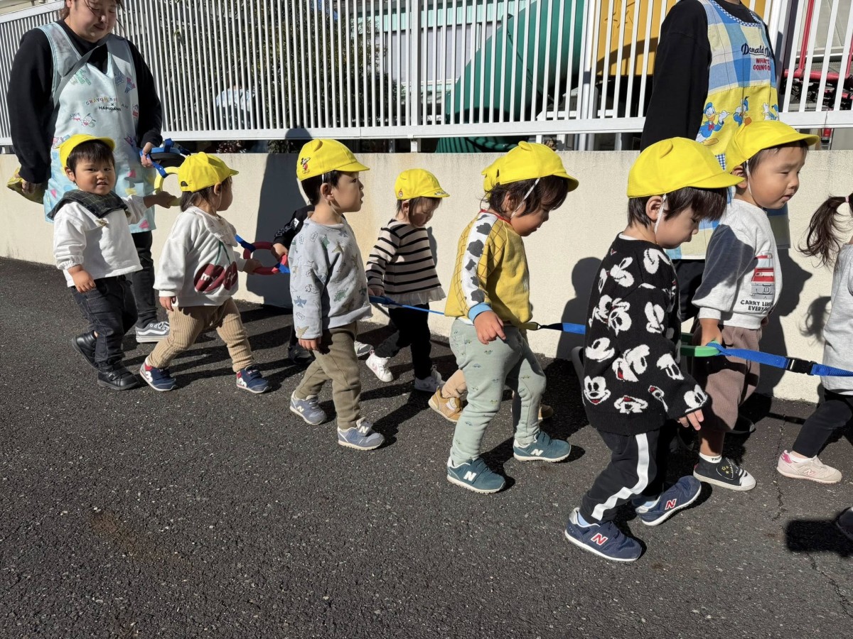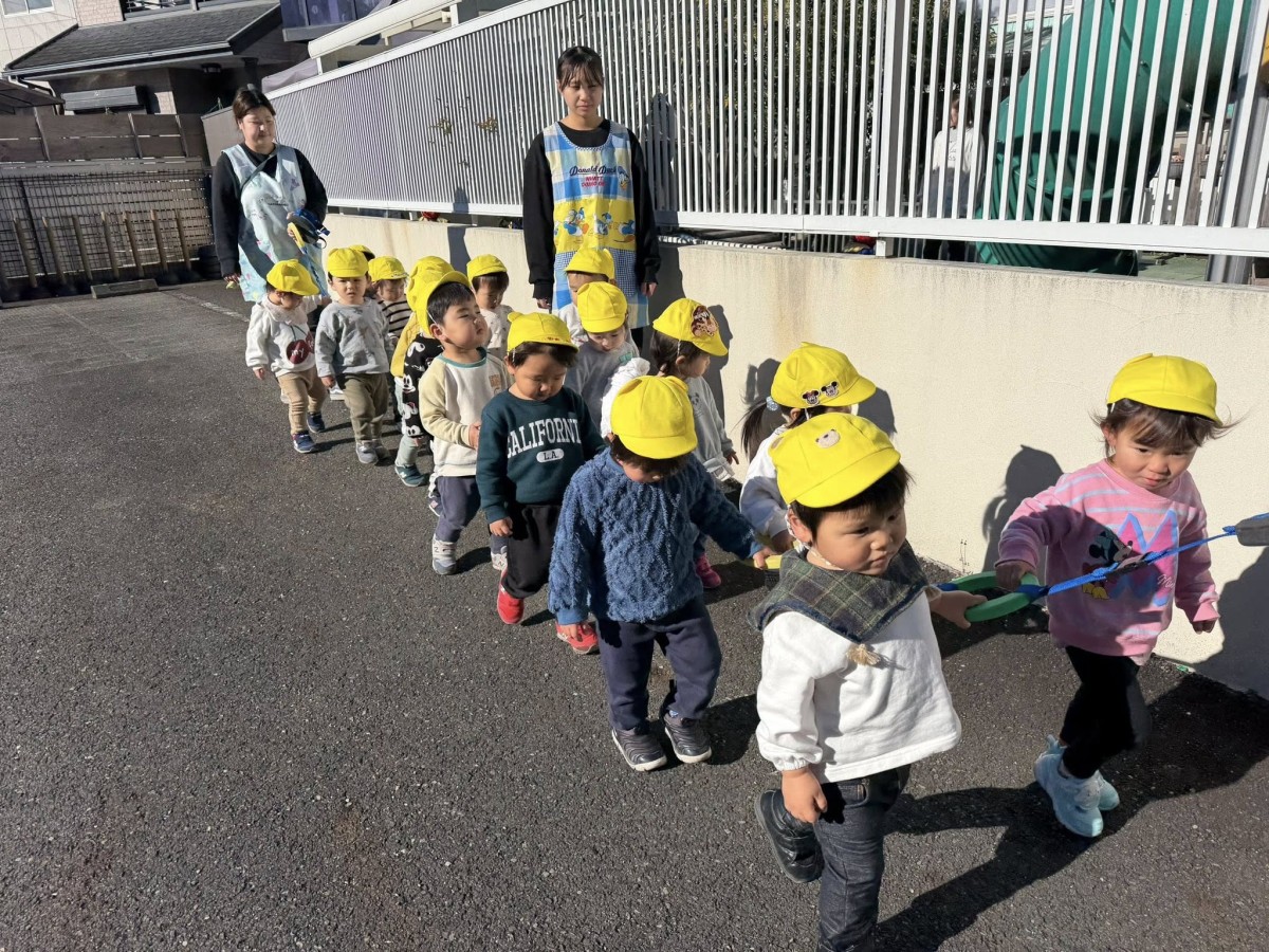 | 今日は園庭で遊ぶ前に誘導ロープで歩く練習をしました。今日は駐車場まで出て歩いてみました!来年はお散歩にも挑戦していきたいと思います♪その後は園庭で遊びました。午後は年末の式に参加しました。明日から楽しいお休みですね♪今年も1年、ありがとうございました。良いお年をお迎えください。新年、元気な皆に会えるのを楽しみにしています(^^) |
