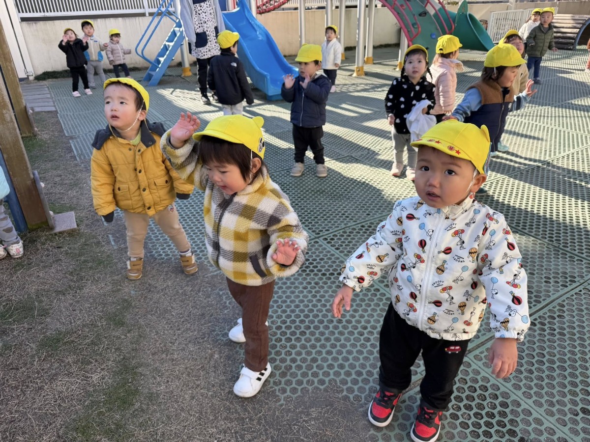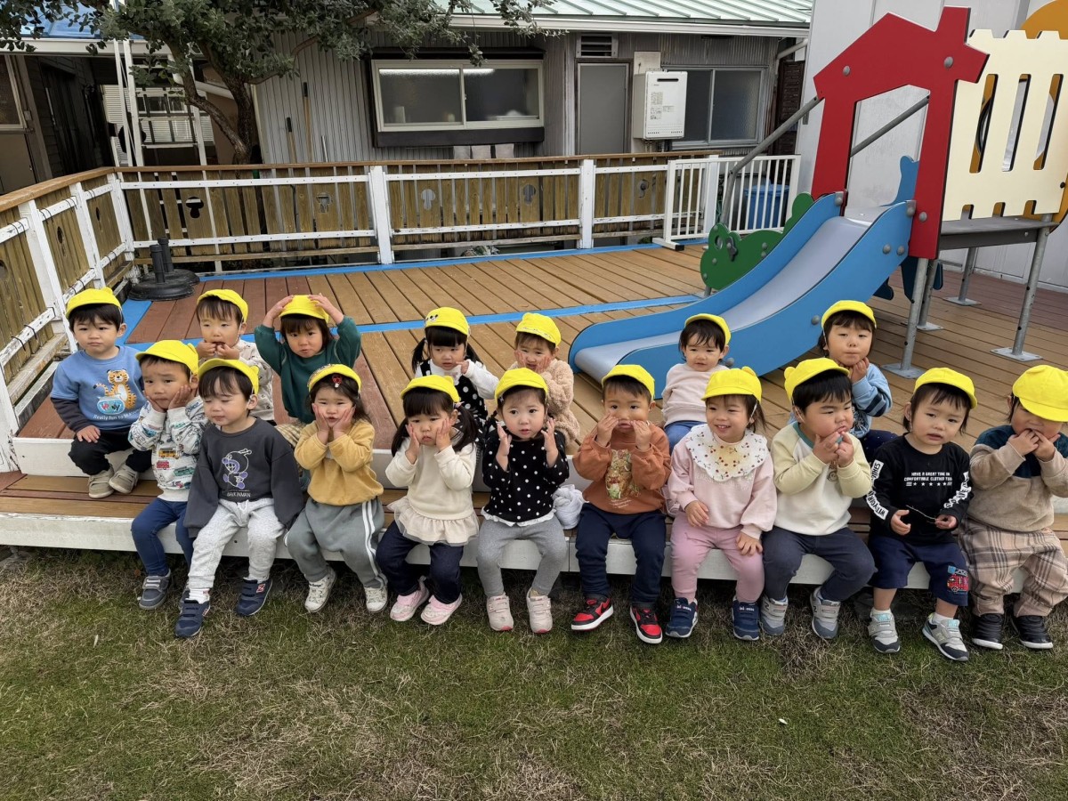 | 園庭で遊びました。三輪車やバイクに乗ってドライブを楽しむひよこ組さん。最近はお友達の名前を呼んで一緒に遊ぼう!と声をかけたり、どこにいるか探して関わろうとする姿が見られます♪お部屋に戻ってからは発表会の練習をしました。手遊びやお遊戯を大きな声を出しながら楽しんで行っています♪ |