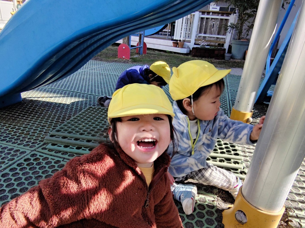 | 今日は室内と園庭に分かれて遊びました。園庭でも室内でもクラスのお友だちが楽しそうに遊んでいるのを見つけると自然と集まって遊ぶことが増えてきました。ニコニコ集まっている姿が可愛らしいです。 |