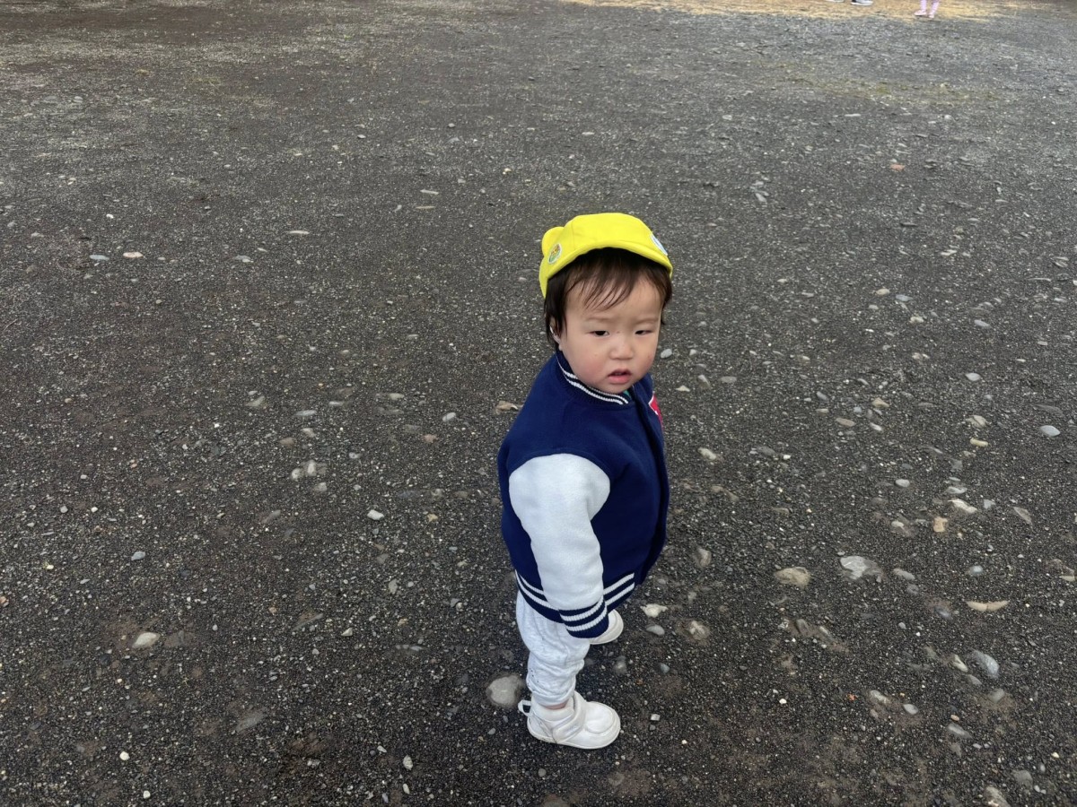 | 今日はお散歩とお部屋に分かれて遊びました。お散歩では周りの景色に興味を示し指差ししながら嬉しそうにしていました。室内では電話のおもちゃに夢中になって耳に当てながらお話ししていました。 |
