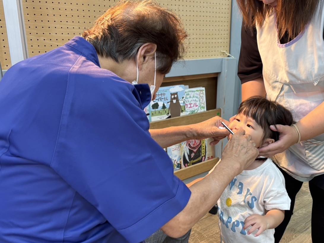 | 今日は室内制作やお絵描きをしました。制作では保育士が紙にのせた色を牛乳パックの紙でのばしています。「何色かな?」「ピンク可愛い!」とお話しながら楽しんでいます♪やっているお友達を見て私もやりたい!と順番待ちしている姿も可愛かったです♪ 午後は歯科検診を行いました。大きなお口を開けて頑張りました! |