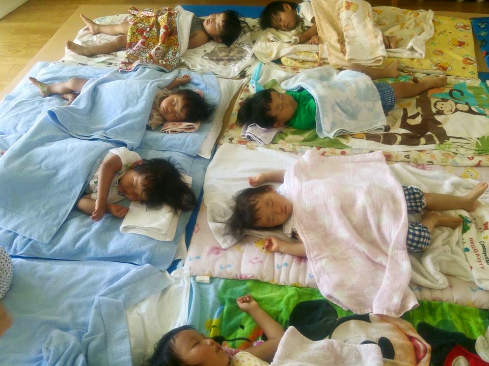 お食事が終わり、トイレを済ませたら・・・ お話を読んでもらったり好きな絵本を読んだり、お気に入りのぬいぐるみを抱っこしたりしておやすみします。 いっぱいあそんでたくさん食べて、いい夢みながらスヤスヤzzz