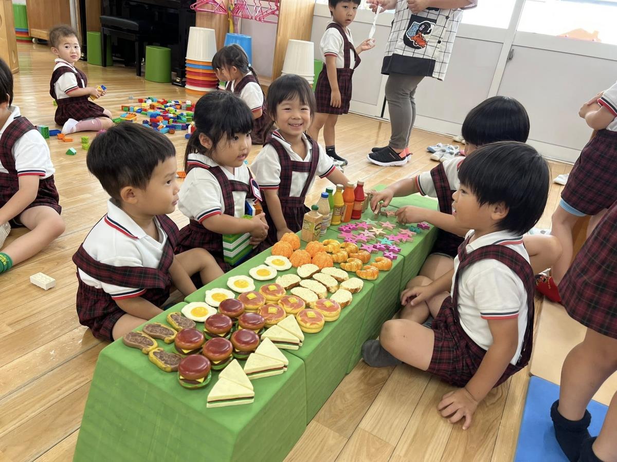 夏のプール遊びが終了すると午睡がなくなり、制作活動や・ブロック遊び・カードゲームなど室内遊び、園庭遊びやお散歩など、午後の活動を行ないます。 |