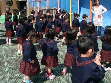 帰りのお集まりをします。 ♪きょうもたのしくすぎました~♪ お歌を歌って「せんせい、さようなら。みなさん、さようなら」 異年齢のお友だちと遊びながら、お家の人のお迎えを待ちます。 |