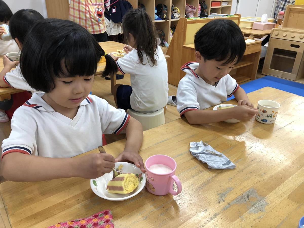 ♪とけいがなりますボンボンボン~♪ お片付け・トイレ・手洗いを済ませ、大好きなおやつに時間です☆ 今日のおやつはなにかな?
